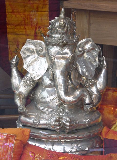 A silver Ganesha in a shop window in Berlin