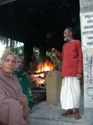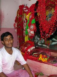 Kali priest I'm the only Westerner here. I talk with a man who tells me that this is one of the 51 holy places called Satipithas where parts of Sati's body fell to Earth. (Sati was Shiva's wife; the story is too long to tell here.) This place, he says, is where her left hip fell. Seems there are many Satipithas in Bengal, often in remote places.