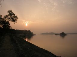 Brahmaputra sunset I wander back toward the center of town, passing a couple of men who are sitting/lying amidst piles of stones, one in front of a small fire. It seems they're covered in grime, like coal dust. This is probably where they sleep. It's hard to imagine that life could get any more basic than this. It's a small mercy that they probably don't know how comfortably a lot of other people live, even well-to-do Indians, to say nothing of the comparative luxury enjoyed by most people in the West.