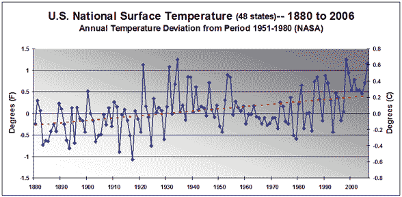 Dr. Patrick Michaels has demonstrated this effect is a common problem with ground- based recording stations, many of which originally were located in predominantly rural areas, but over time have suffered background bias due to urban sprawl and the encroachment of concrete and asphalt ( the "urban heat island effect"). The result has been an upward distortion of increases in ground temperature over time(2). Satellite measurements are not limited in this way, and are accurate to within 0.1° C. They are widely recognized by scientists as the most accurate data available. Significantly, global temperature readings from orbiting satellites show no significant warming in the 18 years they have been continuously recording and returning data (1).