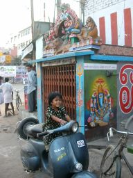 I wander down Nellukkara Street, get an orange, wander back down another street. It's a fairly typical South Indian town, not exactly prosperous, but the people don't seem to be desperately poor. As in all Indian towns there are numerous small shrines to various Hindu deities. These often are locked during the day, and are opened in the evening for the performance of puja.