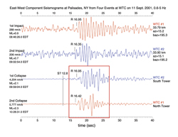 A seismographic record simply records the degree of earth-shaking over some period of time. It does not in itself reveal the cause of that earth-shaking. The question here is, what caused the seismic events recorded at Lamont-Doherty. The authors of the report beg the question in the very title of the paper, assuming that the major events were caused wholly and solely by "Aircraft Impacts and Building Collapses". Nowhere in their report is any other possibility considered, and especially not the possibility that explosions at the WTC might have been, at least in part, the cause of the seismographic readings.